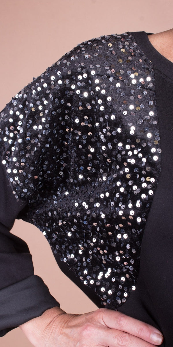 The Canazei Dress blends Italian elegance with subtle sparkle. Designed as a long-sleeve midi silhouette, it features sequined detail on one shoulder and the opposite side hem, roll-up sleeves for versatile styling, and side pockets for practicality. Soft and lightweight like a fine sweater, it drapes beautifully for day-to-night wear or special occasions.