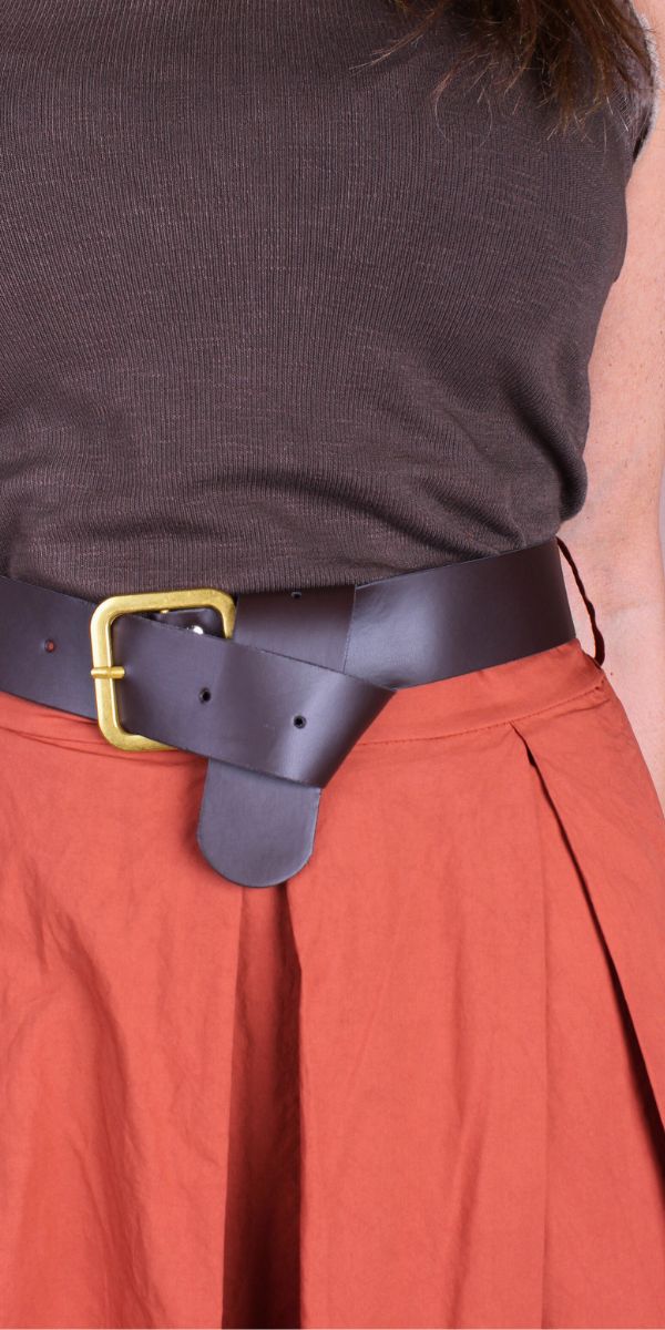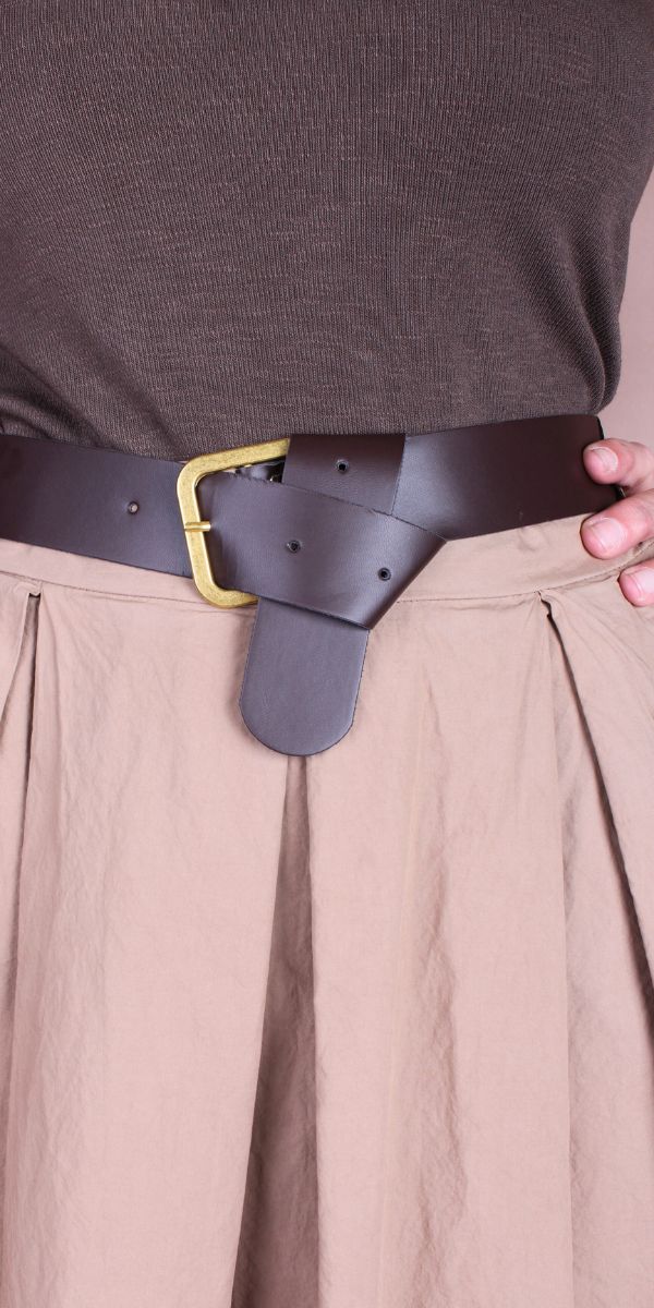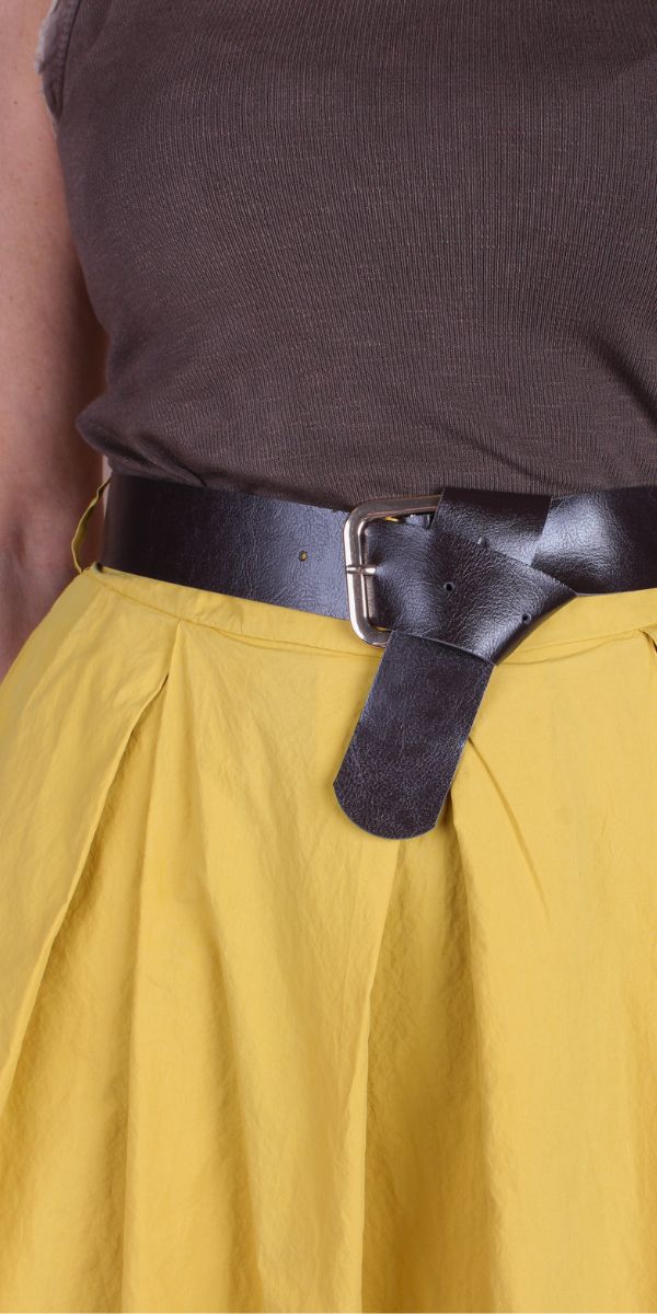 A-Line Pleated Midi Skirt with Comfortable Stretch Waistband and Front Pockets, Finished with a Faux Leather Belt.