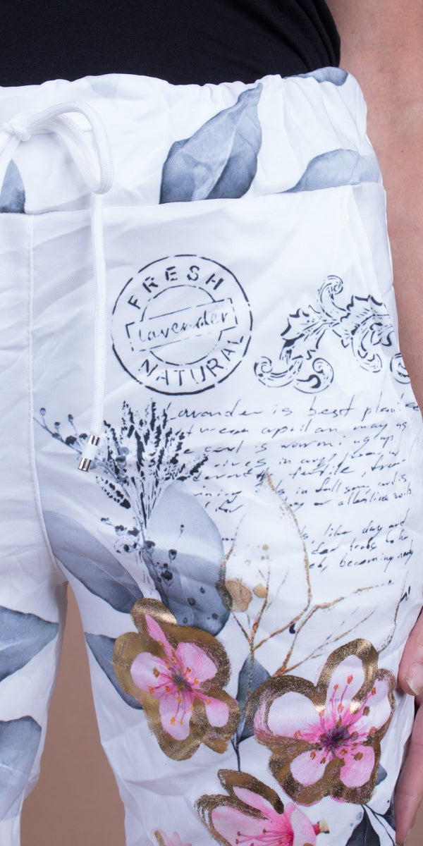 The Geniviv Fresh Floral Pant brings effortless Italian elegance to your wardrobe. Designed with a comfortable drawstring waist, roomy pockets, and a relaxed jogger silhouette, these pants combine style and ease. The artsy floral print with bold gold accents adds a chic, statement-making touch for day-to-night outfits.